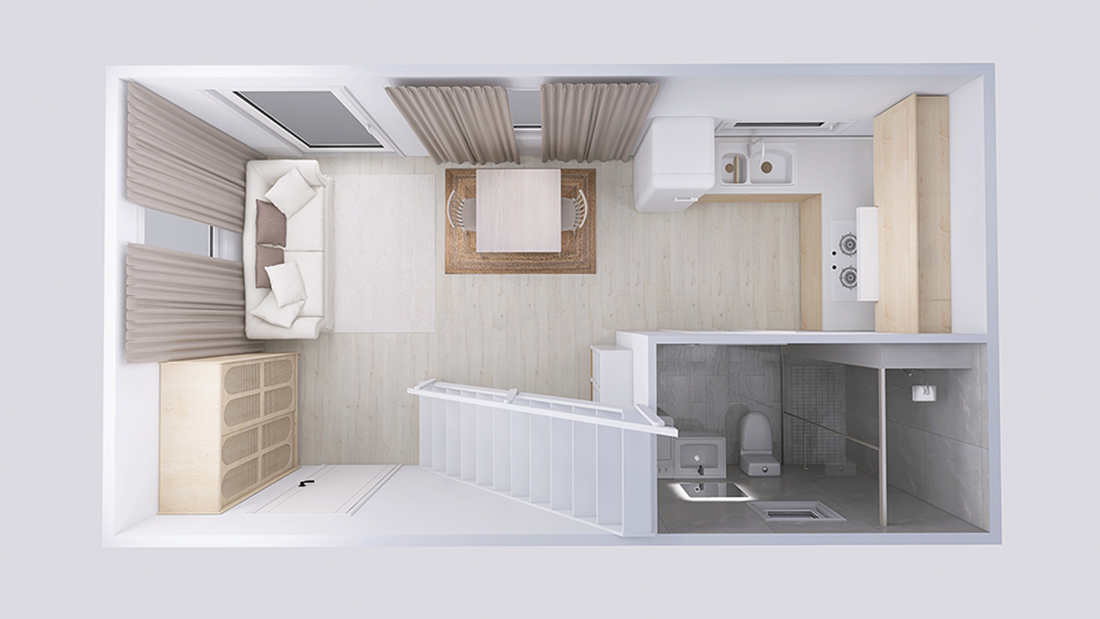 3D‑pohjakuva antaa asunnosta ammattimaisen, selkeän ja helposti hahmotettavan kokonaiskuvan. Sen avulla asiakas näkee tilojen mittasuhteet, materiaalit ja sisustuksen