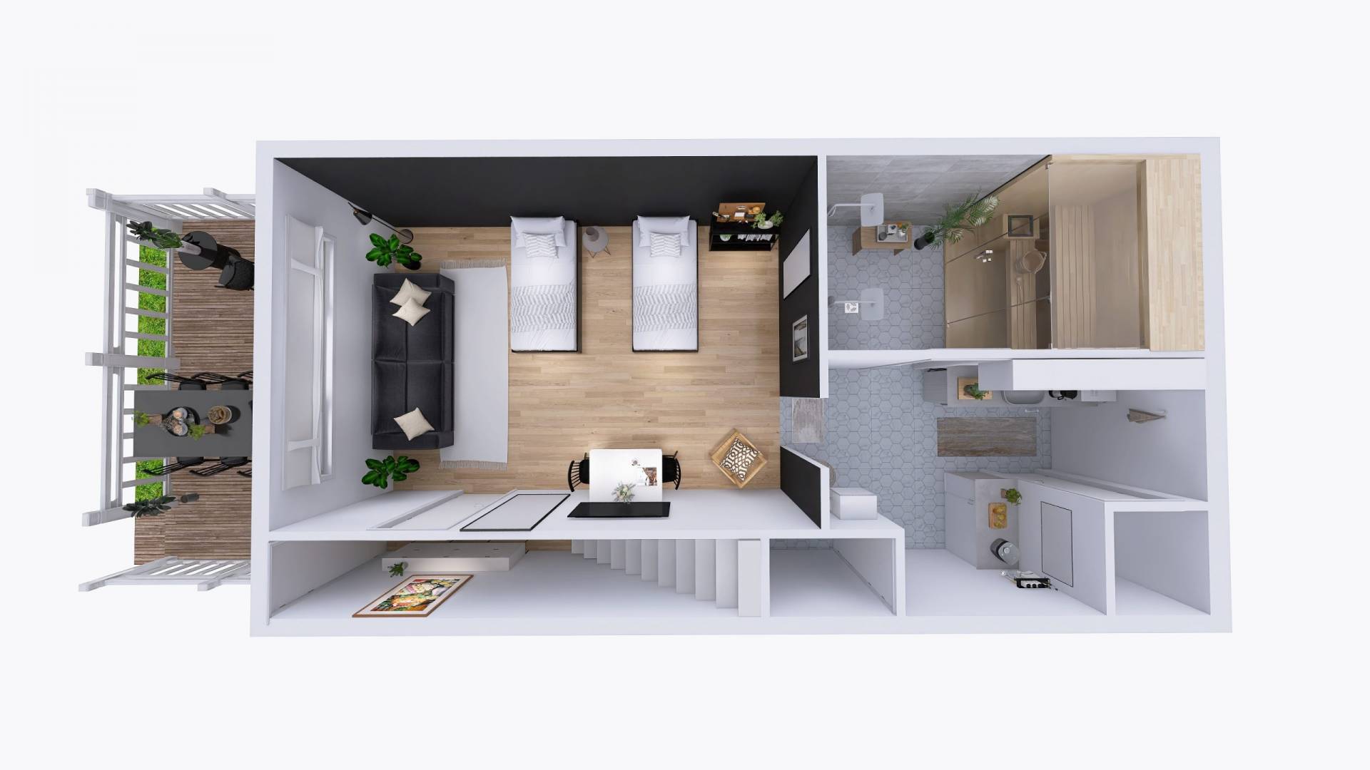 3D‑malli havainnollistaa tilan selkeästi niin uudis‑ kuin saneerauskohteissa ja toimii erinomaisena työkaluna myös sisustussuunnittelussa. Sen avulla on helppo hahmottaa mittasuhteet, kalustevalinnat ja tilan toimivuus ennen toteutusta.